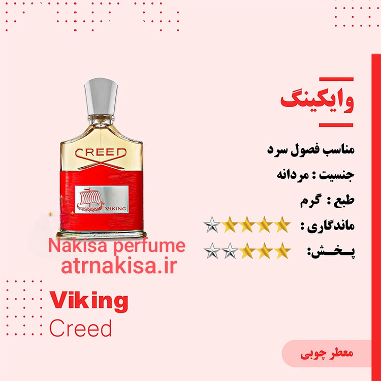 عطر Viking یکی از عطرهای جسور، قدرتمند و کاریزماتیک برند کرید (Creed) است که با ترکیبی ادویهای، آروماتیک و چوبی، برای آقایان طراحی شده که به دنبال اقتدار، جسارت و روحیه رهبری هستند. این عطر در دستهبندی نیش لاکچری قرار میگیرد و شخصیت آن مردانه، پرانرژی و الهامگرفته از روح جنگجویان شمالی است؛ عطری که شما را به دنیایی از شجاعت، آزادی و قدرت بیمرز میبرد.